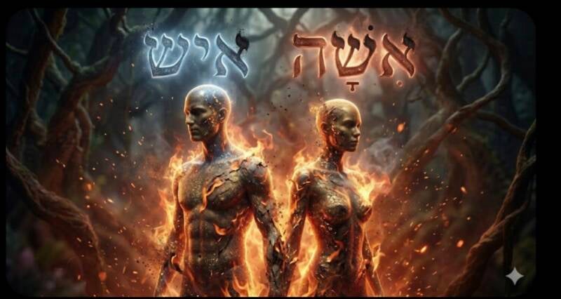 Se si toglie Dio (Yah) dal rapporto tra uomo e donna, cosa resta? Resta solo la parola Esh (אֵשׁ), che significa Fuoco. Senza la presenza di Dio, l'uomo e la donna diventano fuoco che si divora a vicenda.