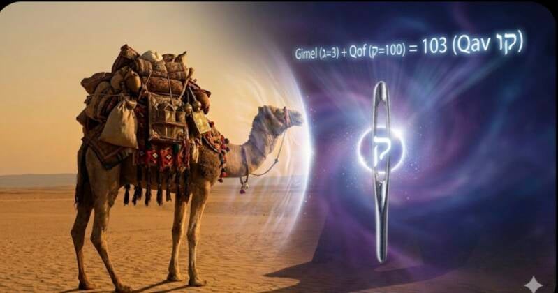 Il "ricco" della parabola non è solo chi ha denaro, ma chi è pieno di sé. La Gimel (il cammello) è strutturalmente incompatibile con la Qof (la cruna). Finché l'uomo si percepisce come una massa di sostanze e attributi, l'impatto con la cruna sarà sempre un fallimento. Il cammello non può passare perché è un "volume", mentre il Regno di Dio è una "dimensione di trasparenza".